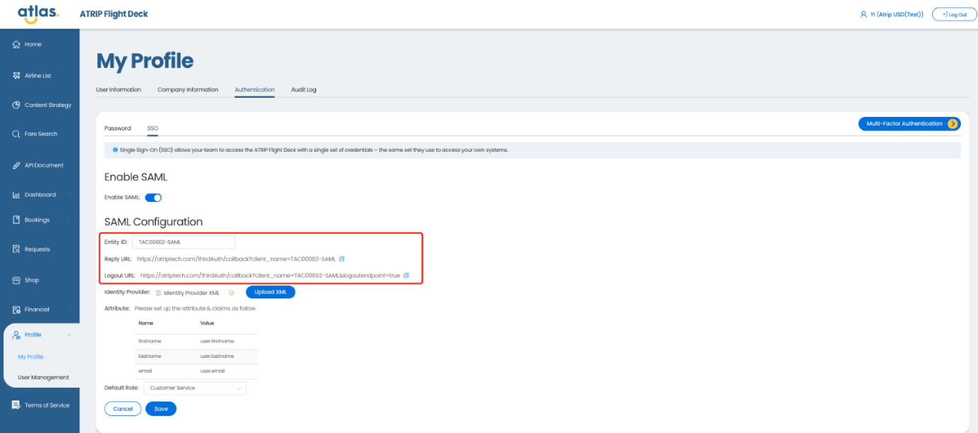 我们将自动生成实体ID、回复URL和注销URL。客户可以在SAML中对其进行配置。