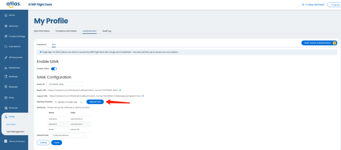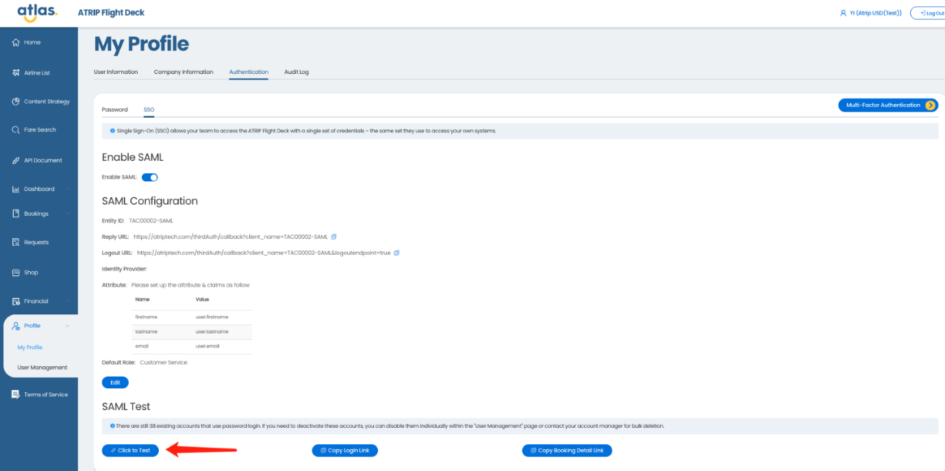 单点登录(SSO)允许您的团队使用同一组凭据访问ATRIP Flight Deck,这组凭据与他们访问您自己的系统时使用的相同。当您有一个庞大的团队时,以及许多人需要定期访问ATRIP Flight Deck时,此功能将非常有用。