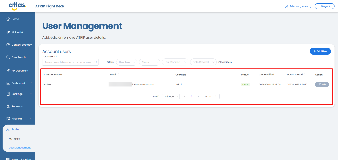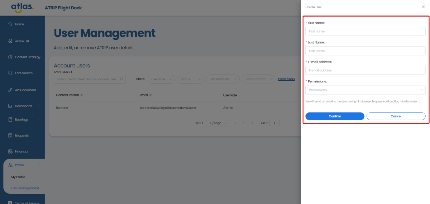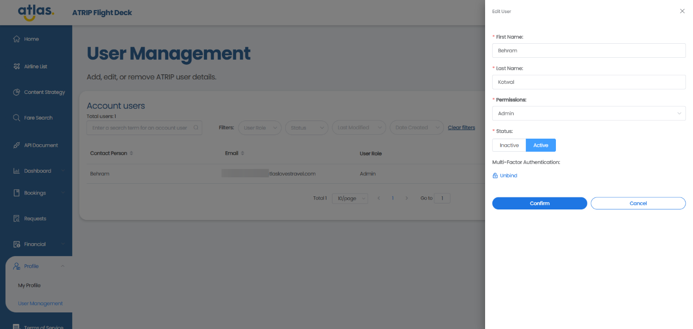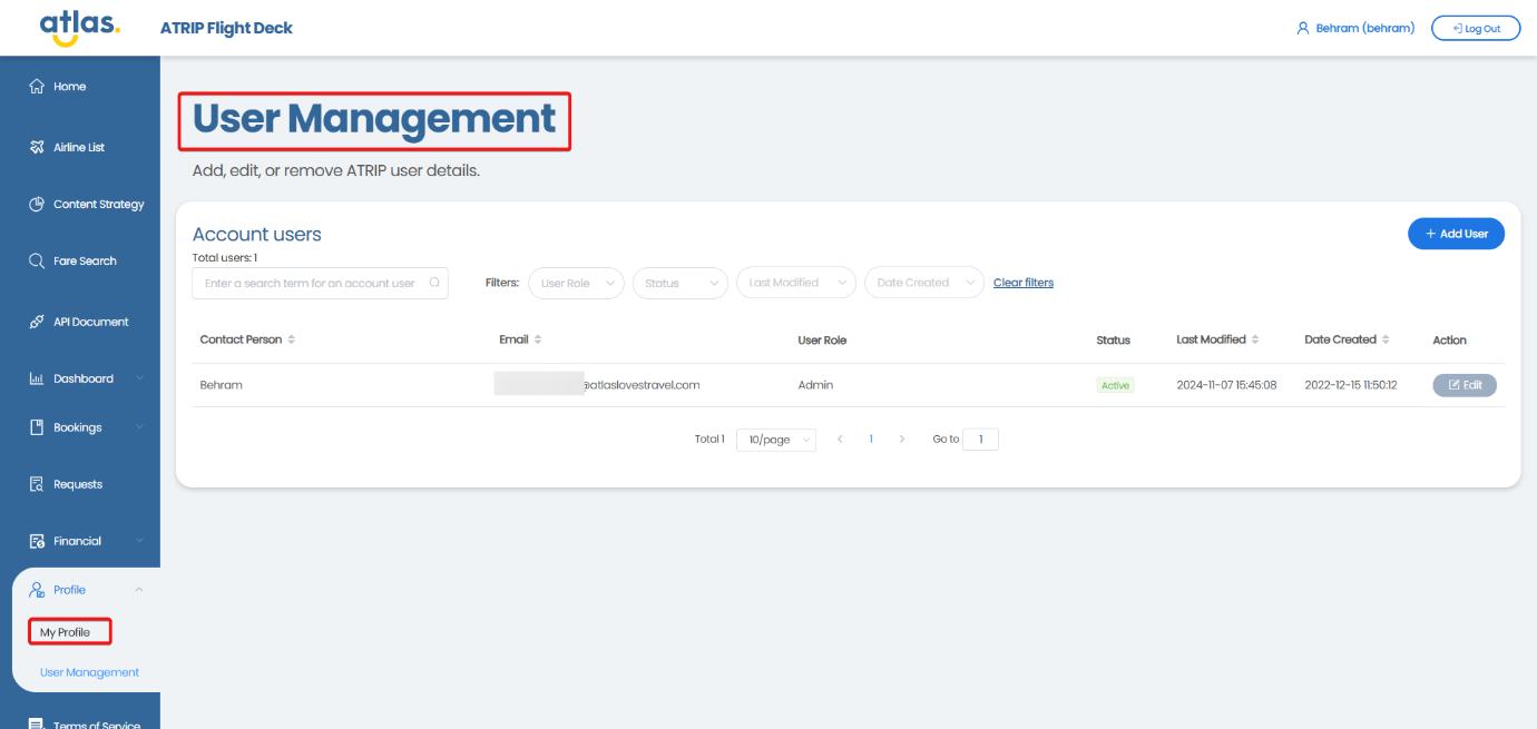 ATRIP -> Profile -> User Management